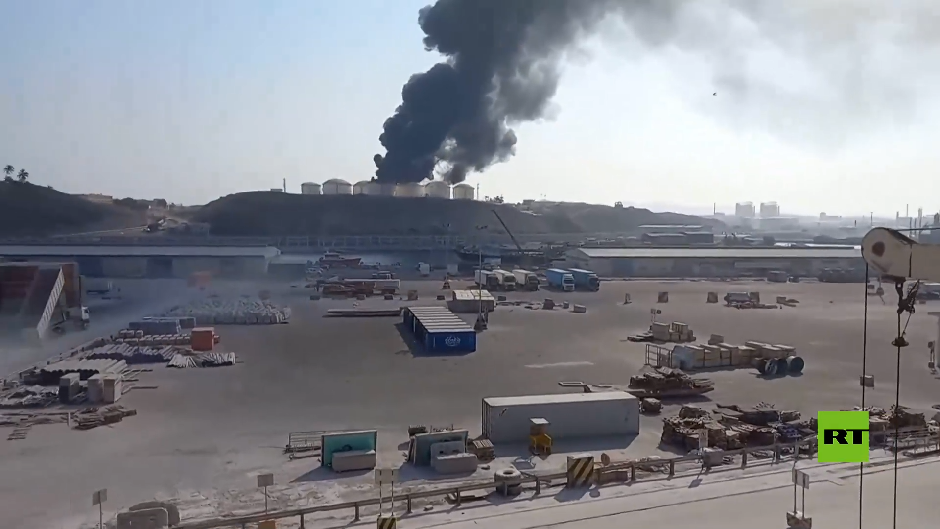 مسيرات تصيب خزانات الوقود في ميناء صلالة بسلطنة عمان (فيديو)