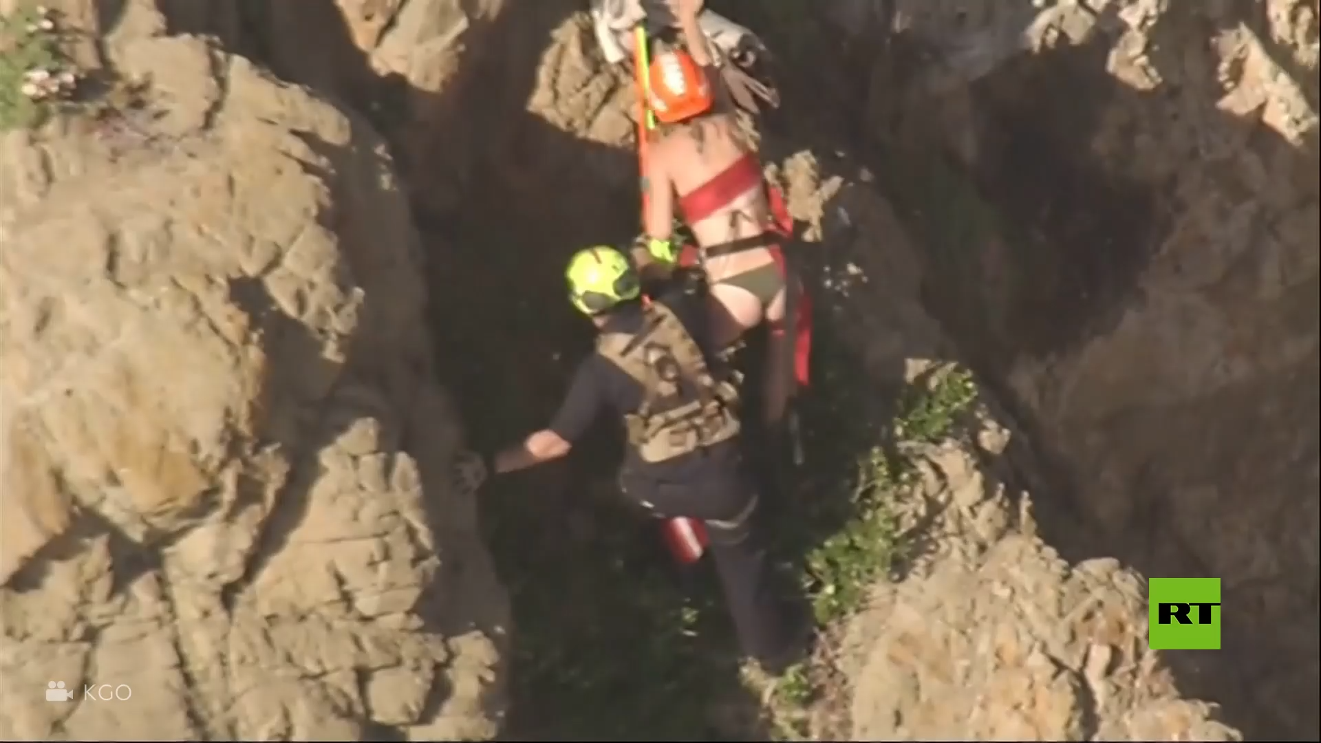 ووثقت المروحية المشهد الدرامي حيث تشبثت المرأة بالصخور بينما كانت أمواج المحيط تتلاطم أسفلها، وصعد أحد رجال الإطفاء نحوها بعد أن نزل بالحبال من الصخور. ووصل رجل الإنقاذ إلى المرأة وربطها بالحبال ووضع الخوذة على رأسها قبل أن يبدأ في نقلها.