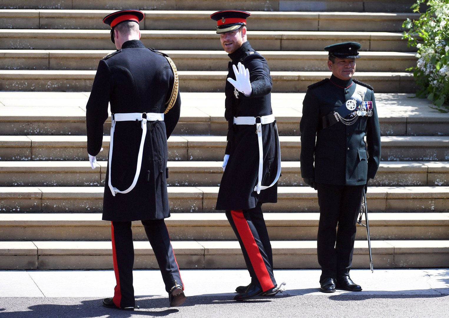 رصدت عدسات المصورين لحظة وصول الأمير هاري صحبة دوق كامبريدج الأمير ويليام إلى كنيسة سان جورج، لعقد قرانه على الممثلة الأمريكية ميغان ماركل.