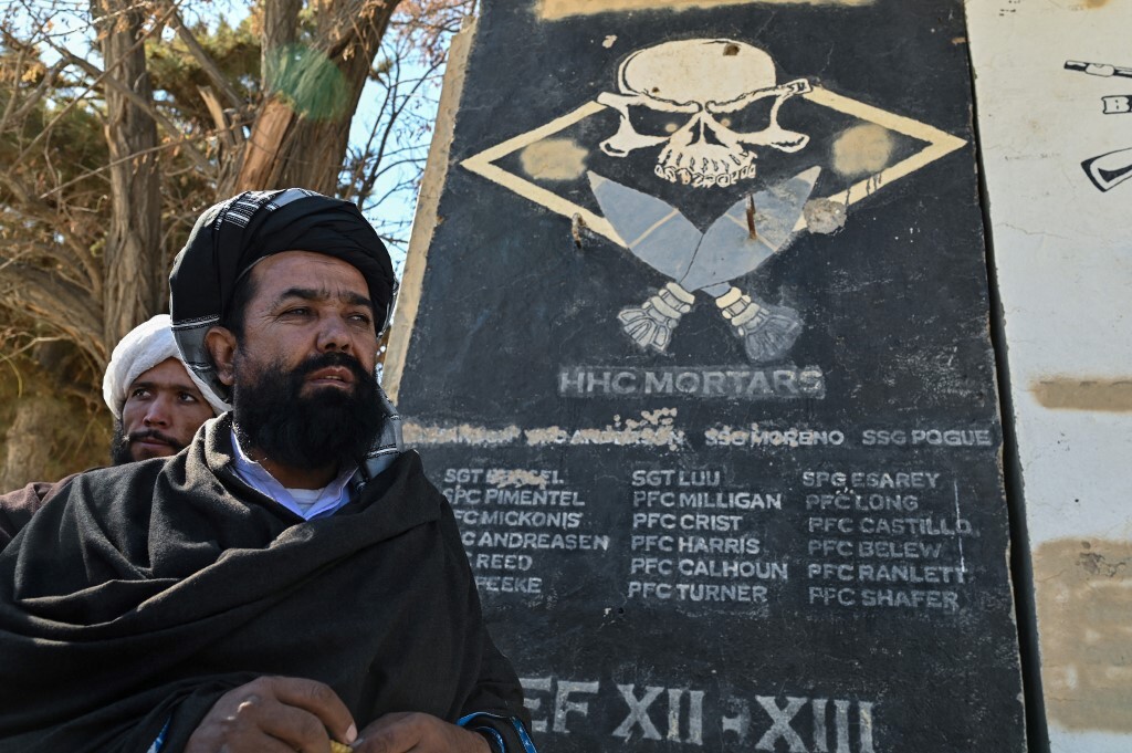وذكرت وكالة "فرانس برس" في تقرير أنه بأحرف كبيرة تحت شعار هو رسم لجمجمة، كتبت أسماء عشرين جنديا وكتيبتهم، لتخليد ذكرى مرورهم في البلاد في أطول حرب خاضتها الولايات المتحدة على الإطلاق، مشيرة إلى أن هذه البقايا التي يبلغ ارتفاعها بضعة أمتار، باتت الآن بأيدي "طالبان"، ومعروضة لتشهد على هزيمة قوات حلف شمال الأطلسي "الناتو" بعد 20 عاما من القتال.