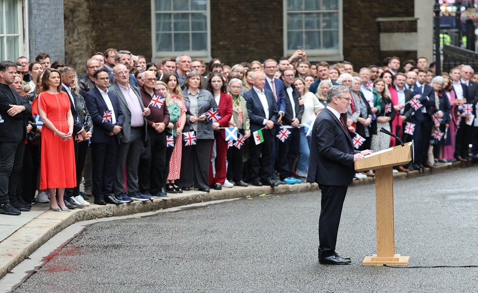 تعهد رئيس وزراء بريطانيا الجديد كير ستارمر في أول خطاب له أمام مكتبه في داونينغ ستريت بعمل حكومته منذ اليوم الأول على "التجديد الوطني".