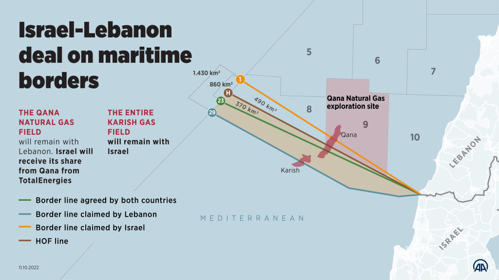 كما أن مجمل مساحة المياه الإقليمية اللبنانية يقدر بنحو 22 ألف كيلومتر مربع، في حين تبلغ المساحة المتنازع عليها مع إسرائيل 854 كيلومترا مربعا.