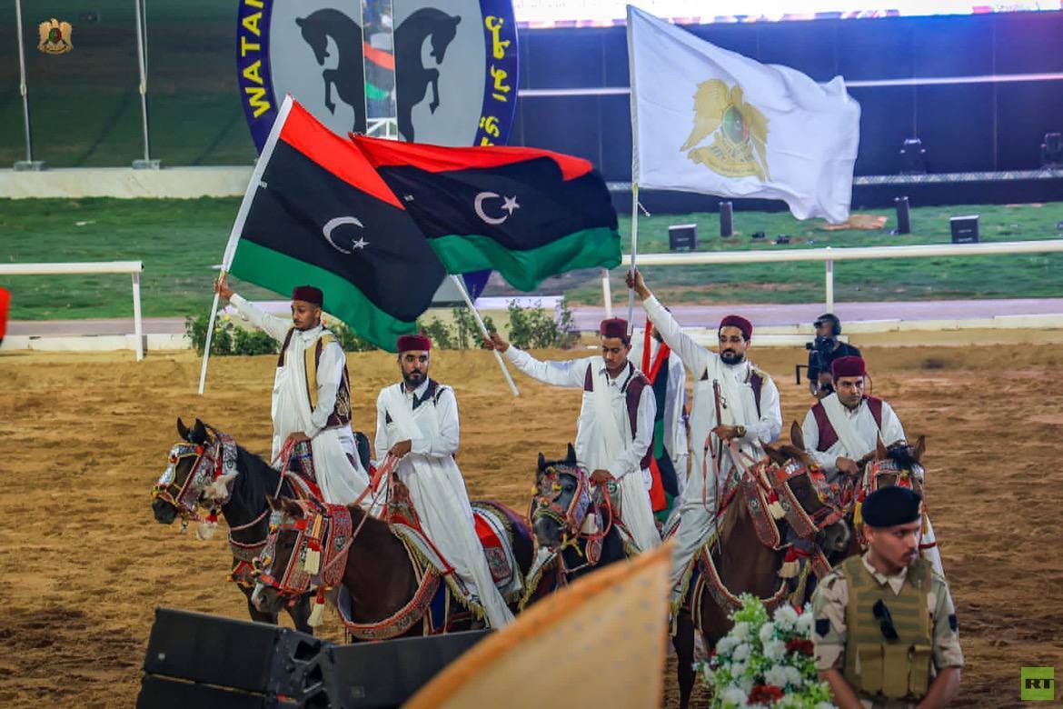 وشارك في البطولة فرسان يمثلون مختلف مدن ومناطق ليبيا، ضمن فعاليات رياضية وصفت بأنها “احتفاء بالهوية الوطنية والعسكرية”، في ظل مشهد احتفالي حمل رمزية سياسية ودعائية واضحة.