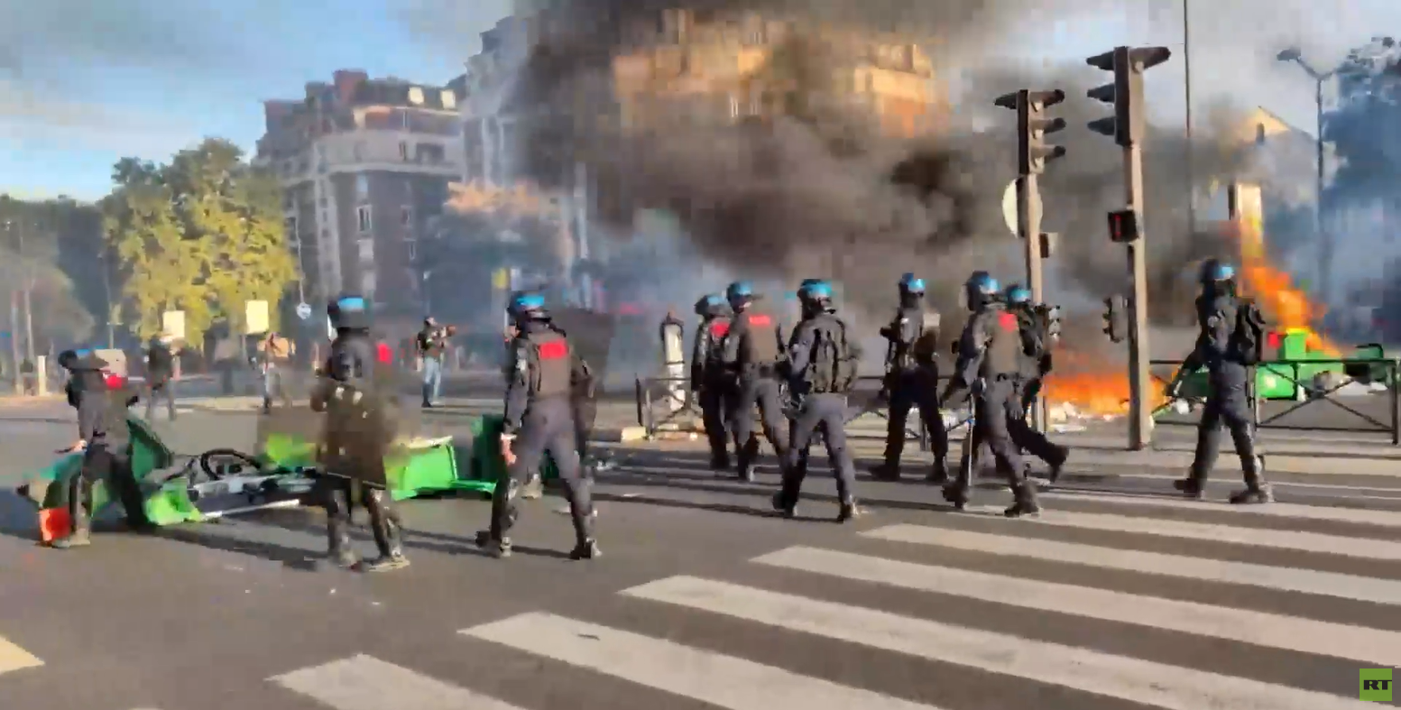 وتحاول الشرطة تفريقهم باستخدام القنابل الصوتية. ومن المقرر تنظيم احتجاجات واسعة النطاق في فرنسا اليوم.