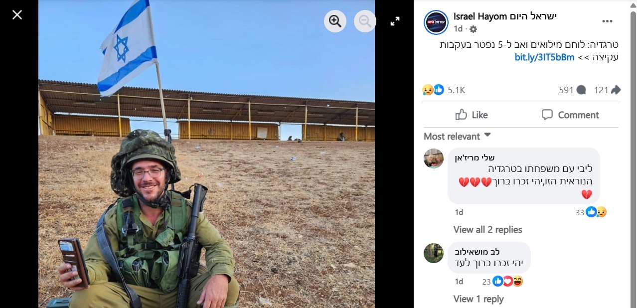 وذكرت رابطة وحدة الاستطلاع في لواء ناحال في بيان، أن الحادثة وقعت أثناء نشاط روتيني.