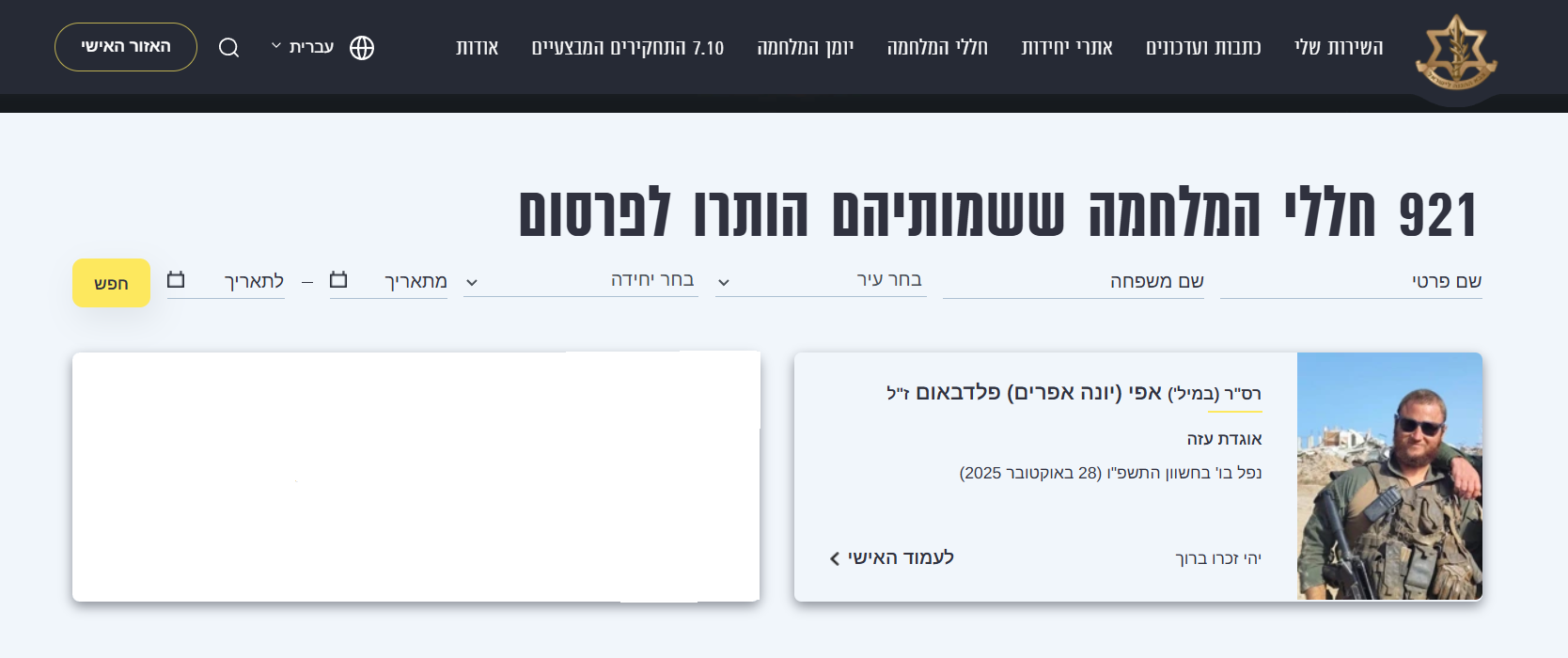 وأوضح بيان الجيش أن فيلدباوم البالغ من العمر 37 عاما قتل في 28 أكتوبر 2025، وقد تم إبلاغ عائلته بالنبأ.