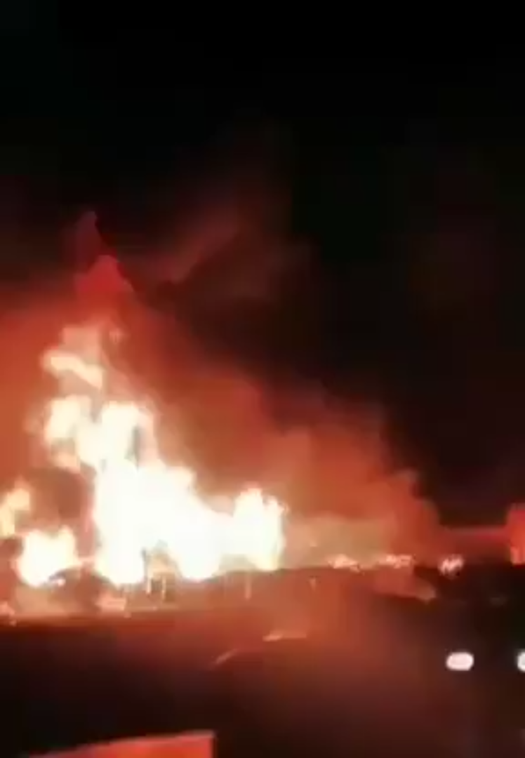 ووثق مقطع فيديو نشرته وسائل إعلام إيرانية وتداولته منصات التواصل الاجتماعي، حريقا ضخما وألسنة لهب تتأجج في السماء، كما يسمع في المقطع صوت انفجارات تهز المكان.