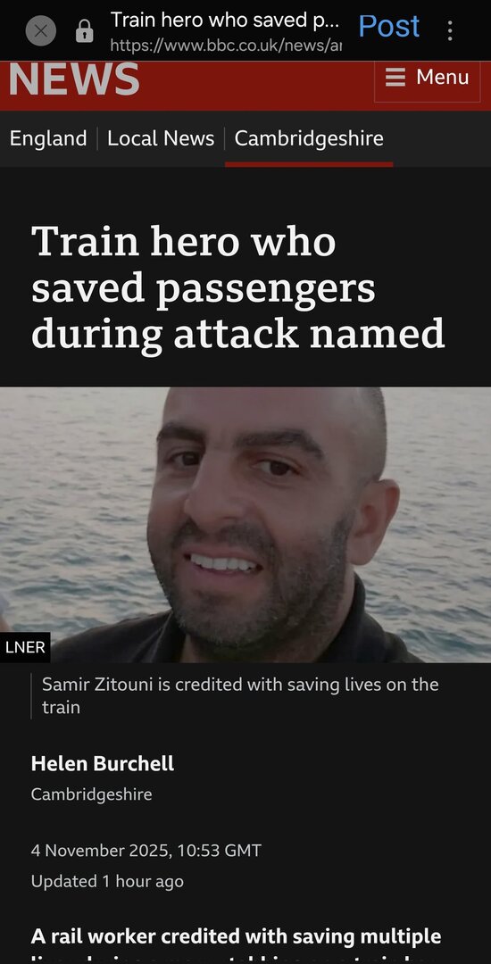 تحول اسم الجزائري سمير زيتوني العامل في شركة السكك الحديدية البريطانية، إلى رمز للشجاعة بعد تصديه لهجوم طعن جماعي على متن قطار كان متجها من دونكاستر إلى لندن مساء السبت.