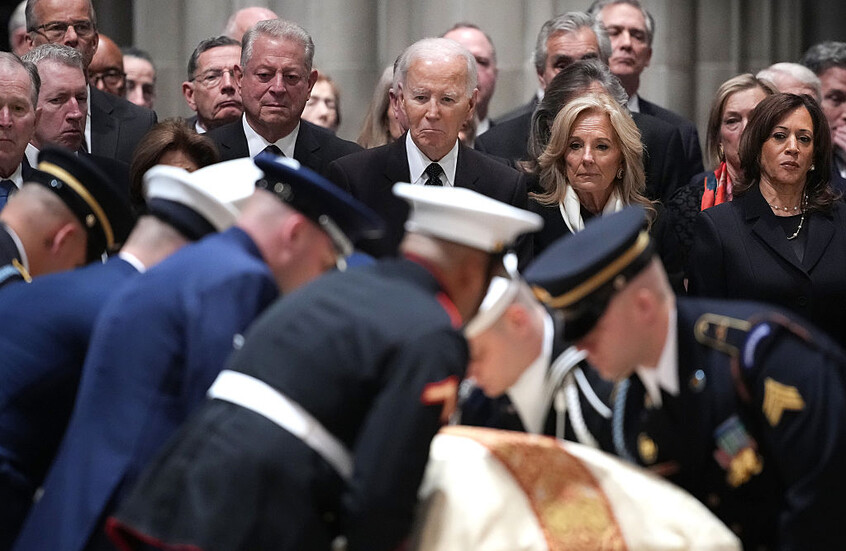 وحضر مراسم التأبين رئيسان سابقان، بوش وجو بايدن، إلى جانب أربعة نواب رؤساء سابقين، كامالا هاريس، مايك بنس، آل غور، ودان كويل، حيث جرى استذكار تشيني لما قدمه خلال عقود من الخدمة العامة ولتفانيه في خدمة البلاد.