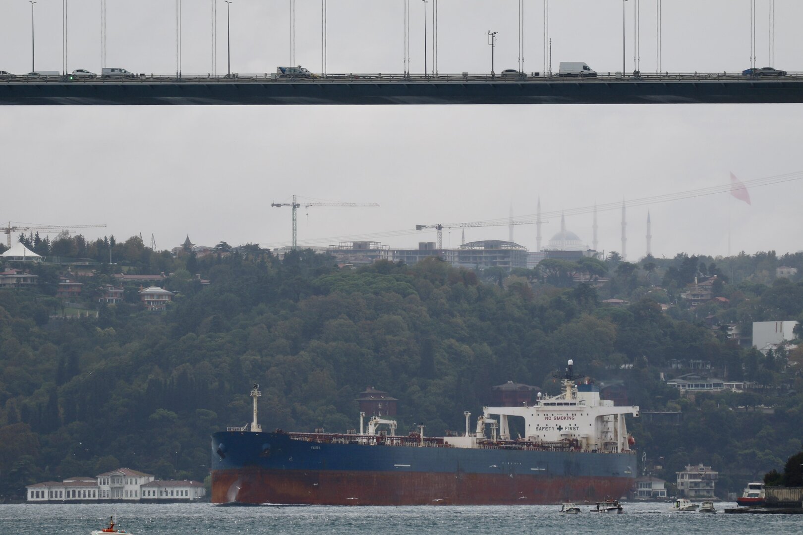وذكر مراسل RT أن ناقلة النفط التي حدث فيها الانفجار، تبعد عن مضيق البسفور باسطنبول حوالي 83 كيلومتر، مشيرا إلى أن الانفجار حصل في غرفة المحرك.