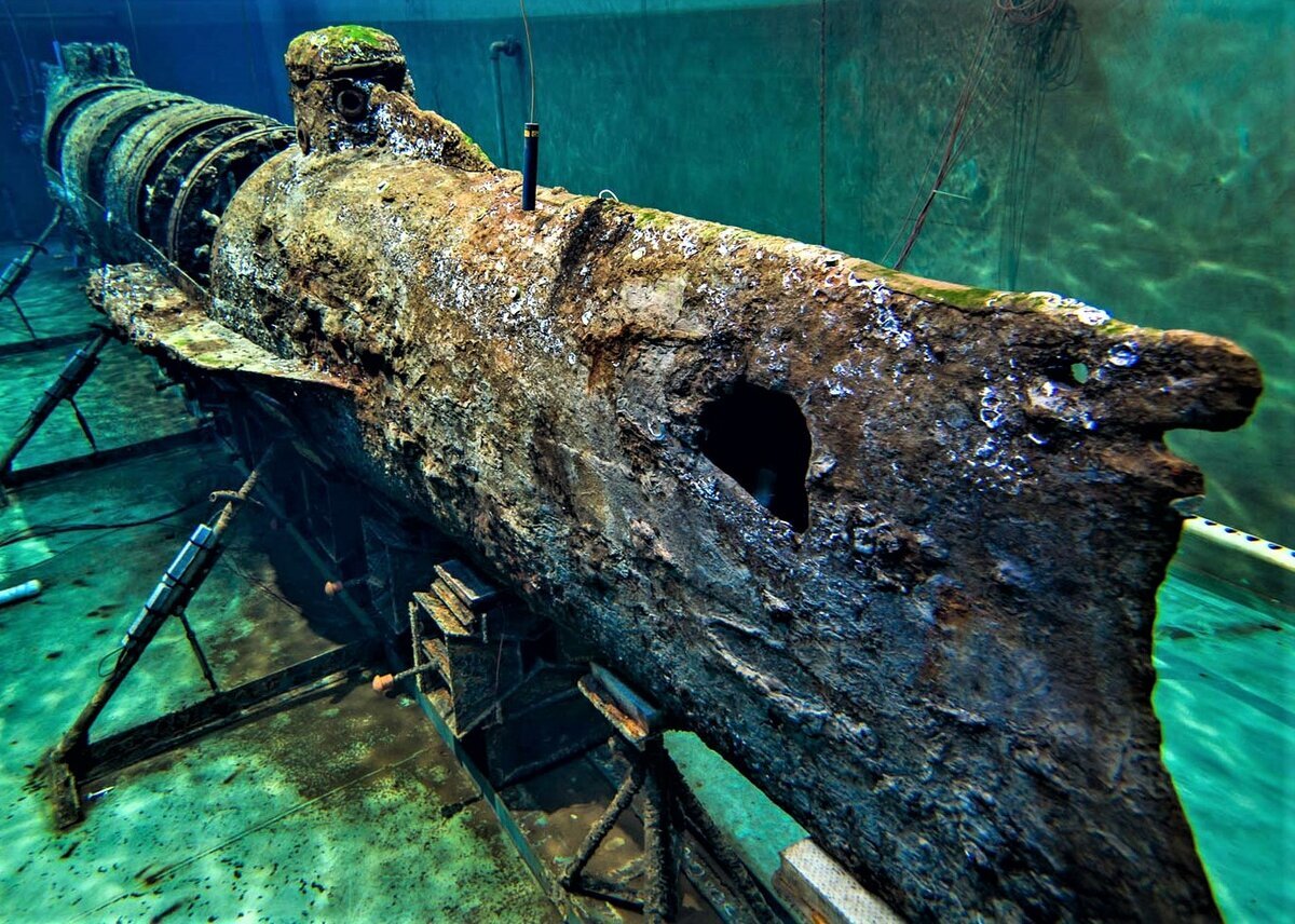 مائة وواحد وثلاثون عاما ظلت الغواصة في قاع ميناء تشارلستون، مدفونة بالكامل في الطين، على بعد مائة متر فقط من المكان الذي أغرقت فيه هدفها. عندما عثر عليها بالصدفة عام 1995، ثم انتُشلت بعد خمس سنوات، انكشف المشهد الدقيق لما حدث في تلك اللحظات الأخيرة.