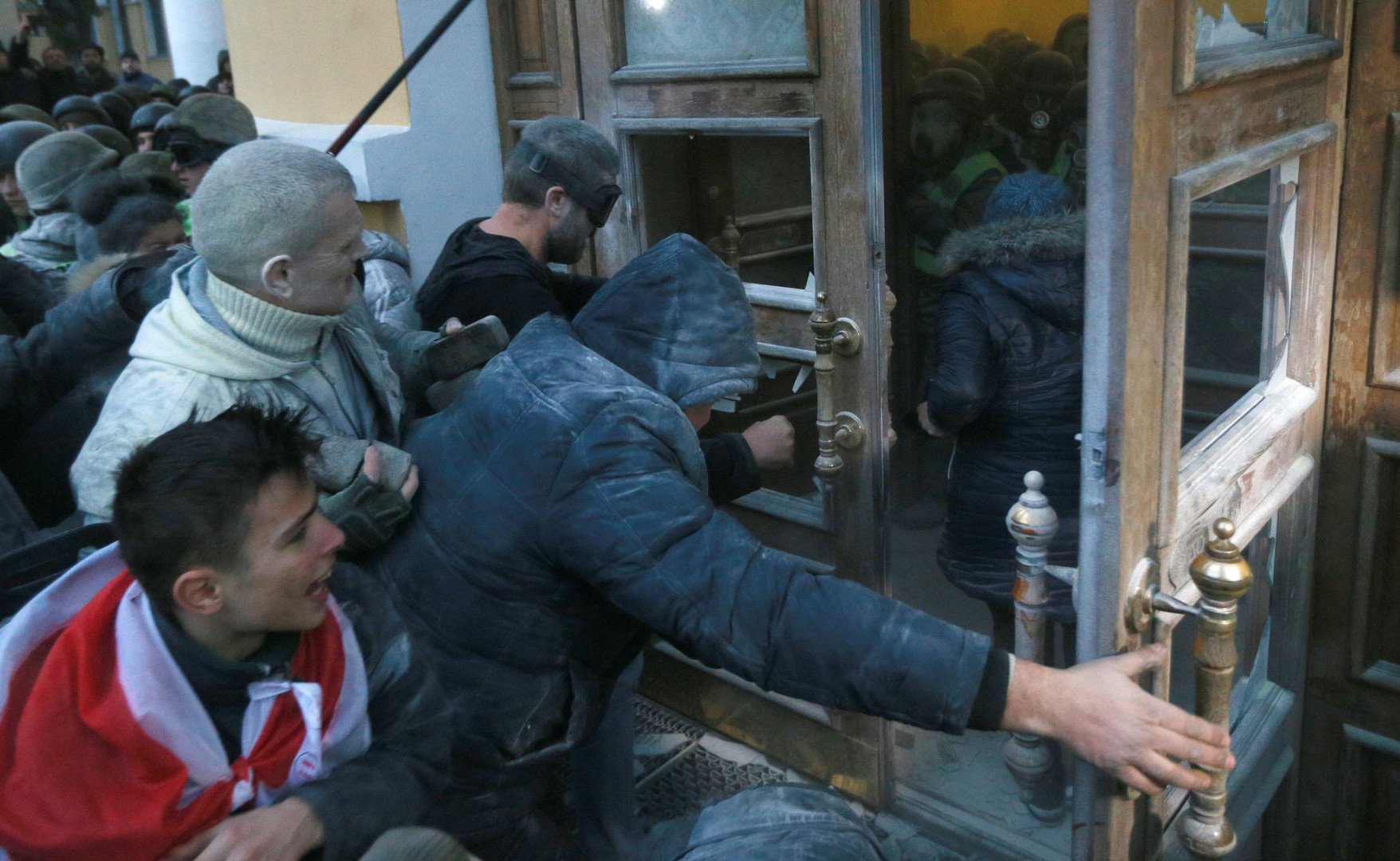 وبعد أن أعلن سآكاشفيلي، أثناء اجتماع مع أنصاره بميدان الاستقلال وسط كييف، عن نيته إقامة مركز تنسيق للمسيرة في قصر أكتوبر في كييف، توجه المحتجون إلى هذا المبنى الذي كانت قوات الحرس الوطني قد وضعت طوقا أمنيا حوله.
