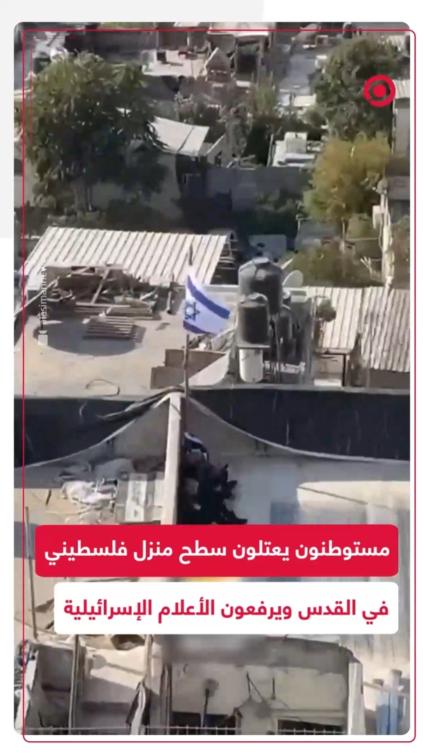 مستوطنون يرفعون الأعلام الإسرائيلية على سطح منزل عائلة فلسطينية في حي بطن الهوى ببلدة سلوان جنوب المسجد الأقصى، بعد أن أخلته القوات الإسرائيلية قسريًا لصالح جمعيات استيطانية. #القدس #علم #إسرائيل #ريل #فيديو #viral #اكسبلور