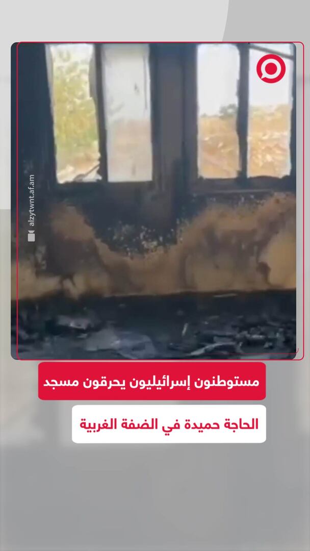 مستوطنون إسرائيليون يحرقون مسجد الحاجة حميدة في الضفة الغربية
