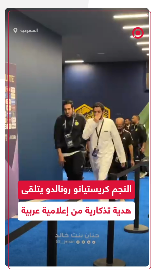إعلامية عربية تحقق حلم حياتها!.. مراسلة قنوات الكأس القطرية جنان بنت خالد، نشرت عبر حسابها الشخصي على منصة "x" فيديو لها وهي تسلم قائد نادي النصر السعودي النجم البرتغالي كريستيانو رونالدو، هدية تذكارية عبارة عن صورة له وعلقت "كان أجمل يوم بحياتي".