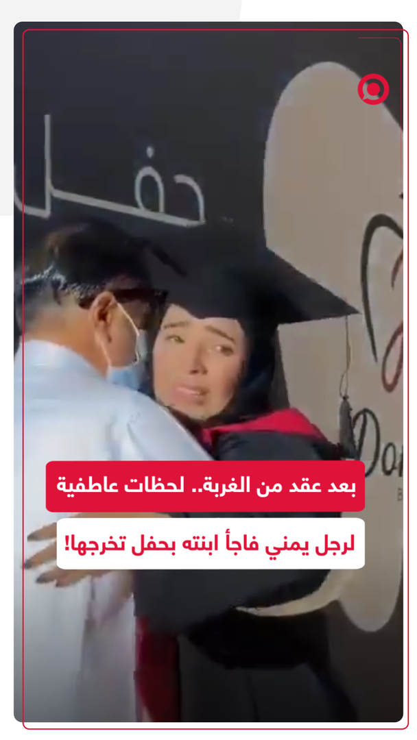 عناق.. دموع.. ومشاعر جياشة!.. مشاهد عاطفية جمعت بين رجل يمني وابنته التي قام بمفاجأتها وحضور حفل تخرجها "طبيبة" من إحدى الجامعات بمدينة تعز، بعد غربة دامت لـ10 سنوات.