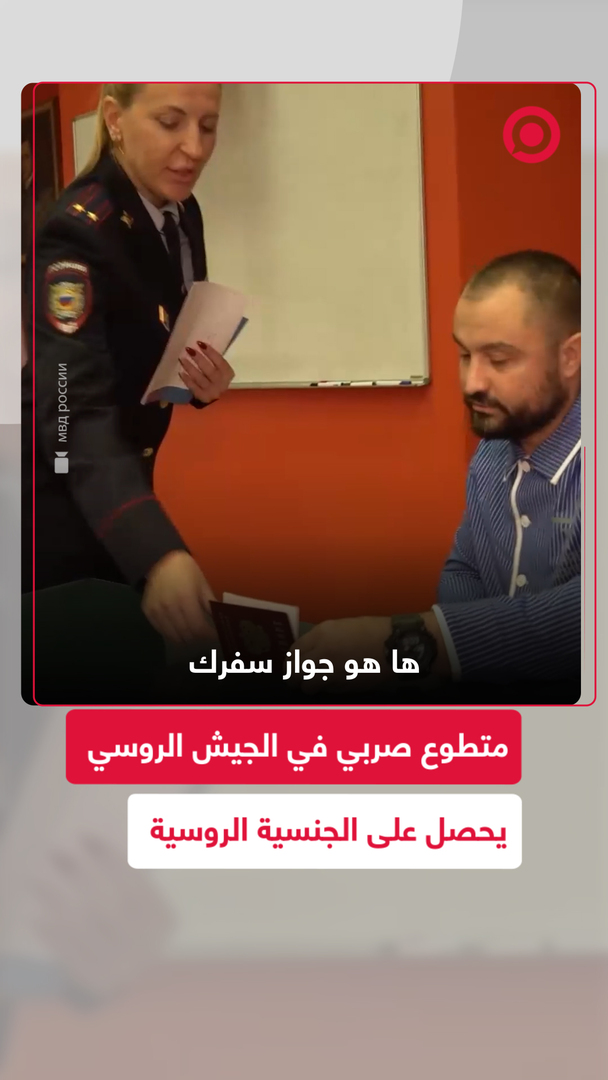 متطوع صربي في القوات الروسية يدعى داريون ريستتش، يحصل على الجنسية الروسية وجواز سفر روسي، بعد عودته من مهام قتالية في الخطوط الأمامية للعملية العسكرية الخاصة في أوكرانيا.