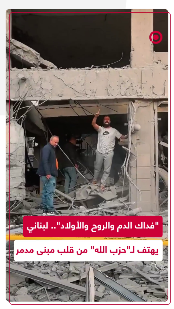 "فداك الدم والروح والأولاد يا أبو هادي".. رجل لبناني يهتف لنصر الله من داخل منزل تعرض للقصف الإسرائيلي.