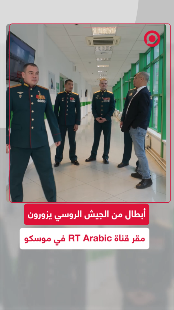 عدد من أبطال الجيش الروسي، الحاصلين على رتب مختلفة وأوسمة شرفية رفيعة، يجرون زيارة لمقر قناة RT Arabic. حيث تم تعريفهم بالقناة وأقسامها، كما سردوا قصص بطولاتهم والإنجازات التي حققها الجيش الروسي في مواجهة النازية في جبهات العملية العسكرية.
