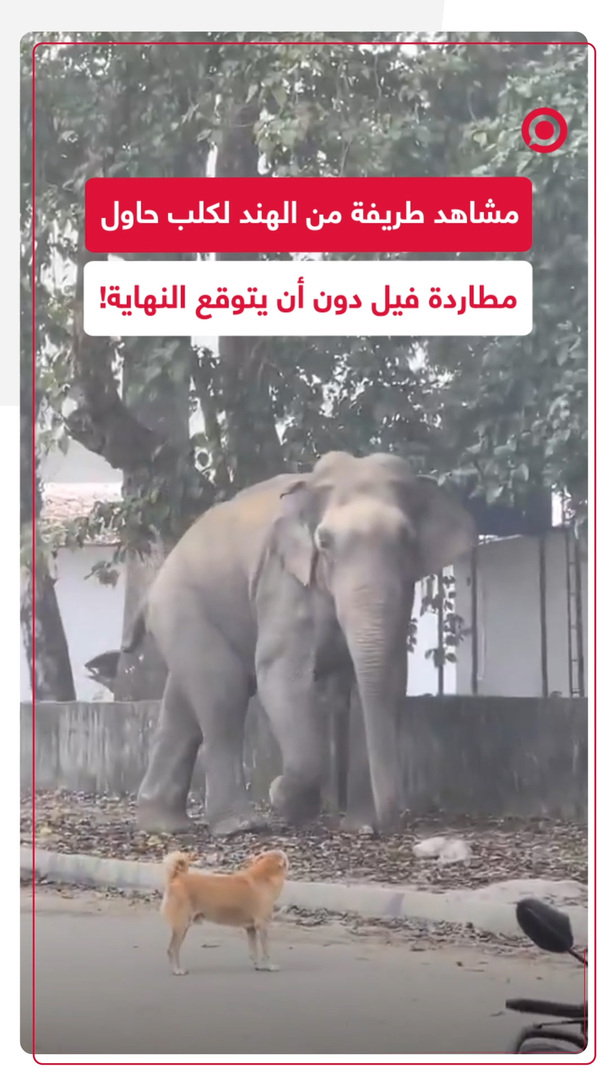 مقطع فيديو طريف انتشر على مواقع التواصل الاجتماعي لكلب حاول مطاردة فيل في منطقة سكنية بإحدى المدن الهندية، ولكنه لم يكن يتوقع أنه من سيهرب أولا.