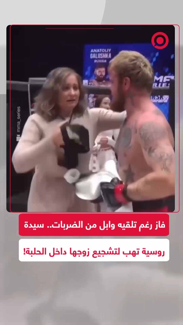 سبب آخر للعثور على زوجة محبة😄.. المقاتل الروسي فلاديمير بولوزوف تلقى وابلا من الضربات من خصمه، ولكن زوجته لم تستطع تحمل الأمر، فأسرعت إلى القفص وهي تصرخ: "فولوديا، قف!"، حيث أن تشجيعها له مكنه من الفوز بشكل غير متوقع.