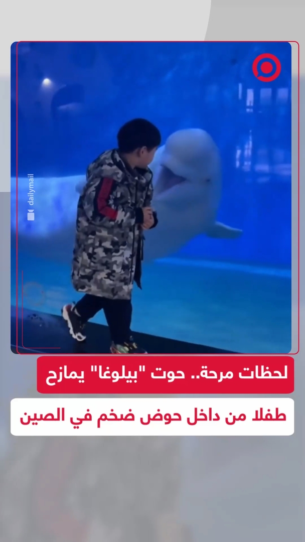 لحظة مذهلة بين طفل وحوت 🐋💙.. مشهد رائع لحوت "بيلوغا" الفضولي وهو يتبع طفلا صغيرا داخل حوض سمك بالعاصمة الصينية بكين.