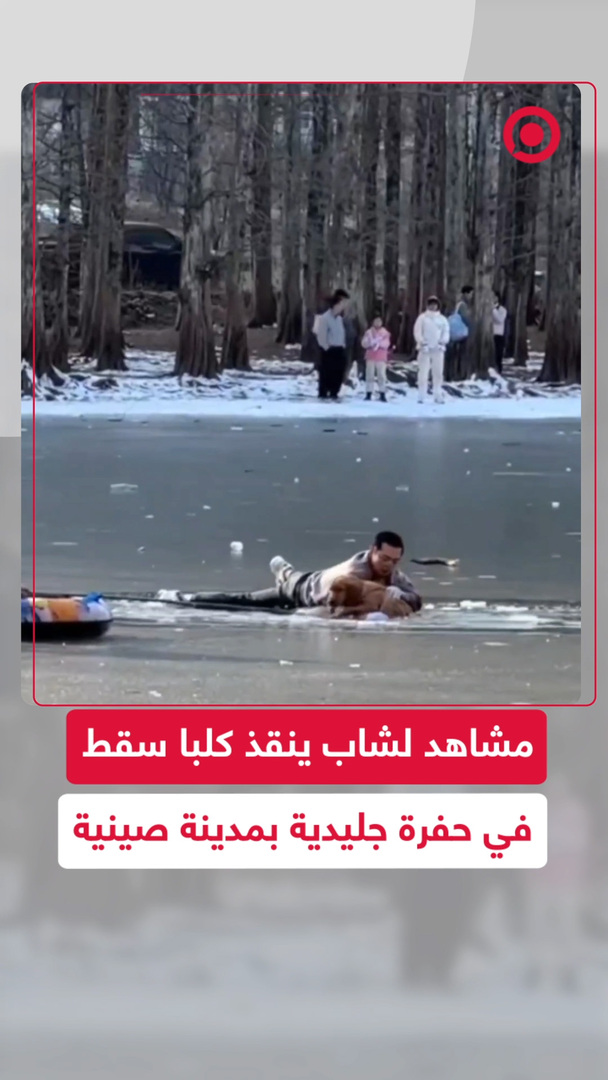 مقطع فيديو انتشر على مواقع التواصل الاجتماعي لأحد السكان المحليين في مدينة هانتشونغ الصينية وهو ينقذ كلبا سقط داخل حفرة جليدية حيث زحف وكسر الجليد وتمكن من سحب الكلب وإنقاذه.