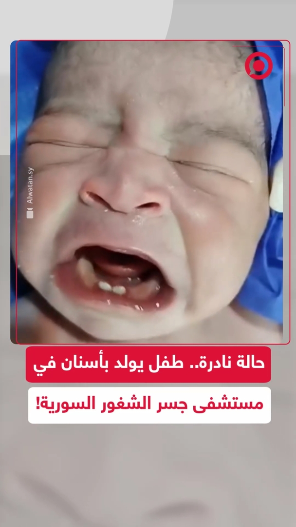 حالة نادرة 👶🦷.. شهد مشفى جسر الشغور في محافظة إدلب السورية ولادة طفل لديه أسنان، حيث تحدث هذه الحالة بمعدل طفل واحد بين كل 2000 إلى 3500 مولود.