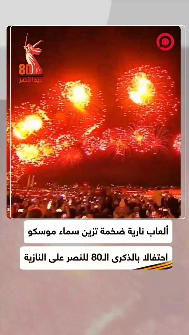 تكريما لأرواح المقاتلين الأبطال.. عرض احتفالي ضخم بالألعاب النارية ينطلق في سماء العاصمة الروسية موسكو احتفالا بالذكرى الـ80 للنصر على النـ،ـازية.