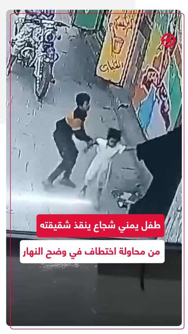 مشهد بطولي من اليمن.. مقطع مؤثر لطفل يمني ينقذ شقيقته من محاولة اختطاف في وضح النهار بمدينة ذمار.