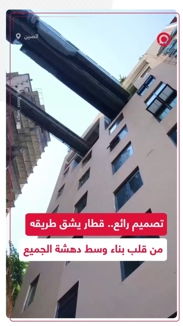 مشهد رائع لقطار يشق طريقه من أحد قلب المباني في الصين