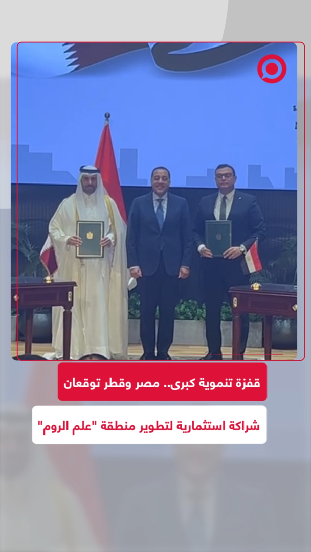 بقيمة 29.7 مليار دولار.. مصر وقطر توقعان شراكة استثمارية لتطوير منطقة "علم الروم" على الساحل الشمالي، وتحويلها إلى وجهة سياحية واستثمارية عالمية. #استثمار #مصر_قطر #الساحل_الشمالي #علم_الروم #شراكة #سياحة #تعاون_عربي #فيديو
