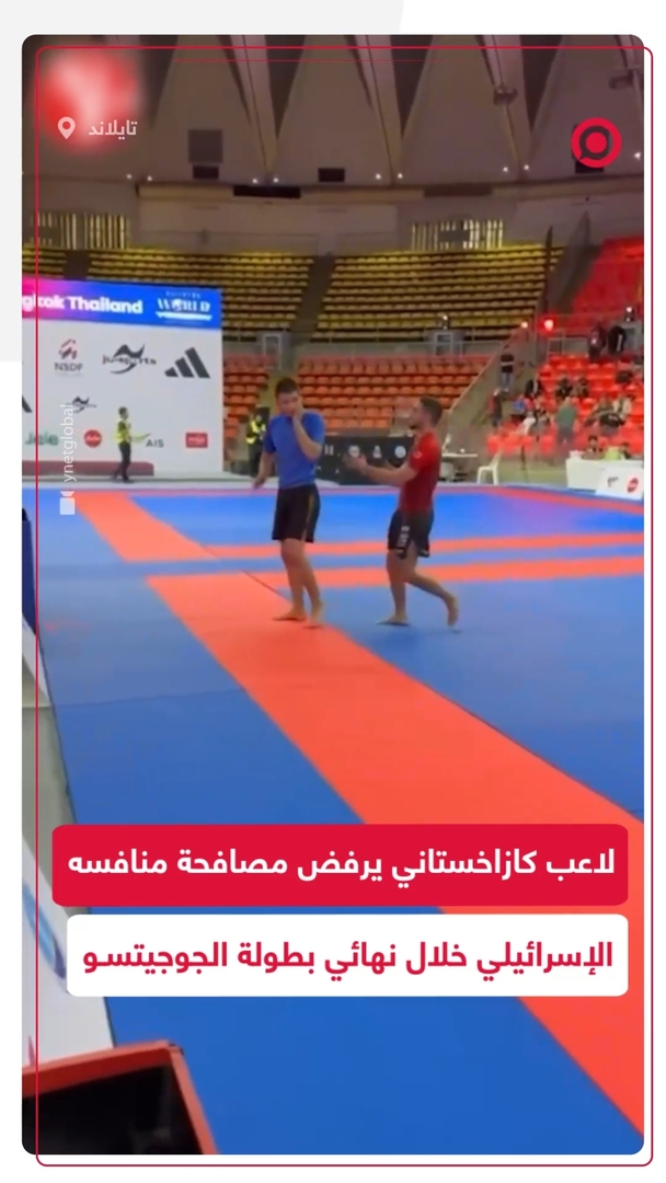 بلاده طبّعت علاقاتها مؤخرا مع إسرائيل.. أظهر مقطع مصوَّر من نهائي بطولة العالم للجوجيتسو في العاصمة التايلندية بانكوك لحظة قيام لاعب كازاخستاني بركل منافسه الإسرائيلي ورفض مصافحته عقب انتهاء النزال. #بطولة #جوجيتسو #تايلاند #ترند #فيديو #viral #اكسبلور