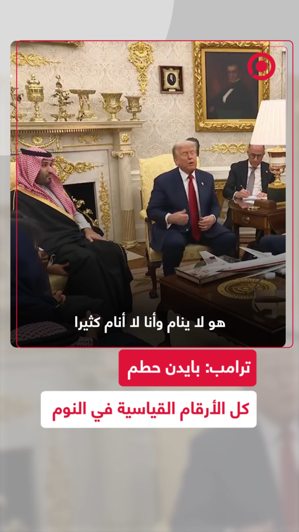 "بايدن حطم كل الأرقام القياسية في النوم خلال فترة رئاسته".. الرئيس الأمريكي دونالد ترامب يسخر من الرئيس السابق جو بايدن خلال لقائه ولي العهد السعودي، الأمير محمد بن سلمان، في البيت الأبيض. #فيديو #اكسبلور #واشنطن #سلمان #السعودية #ترامب #بايدن