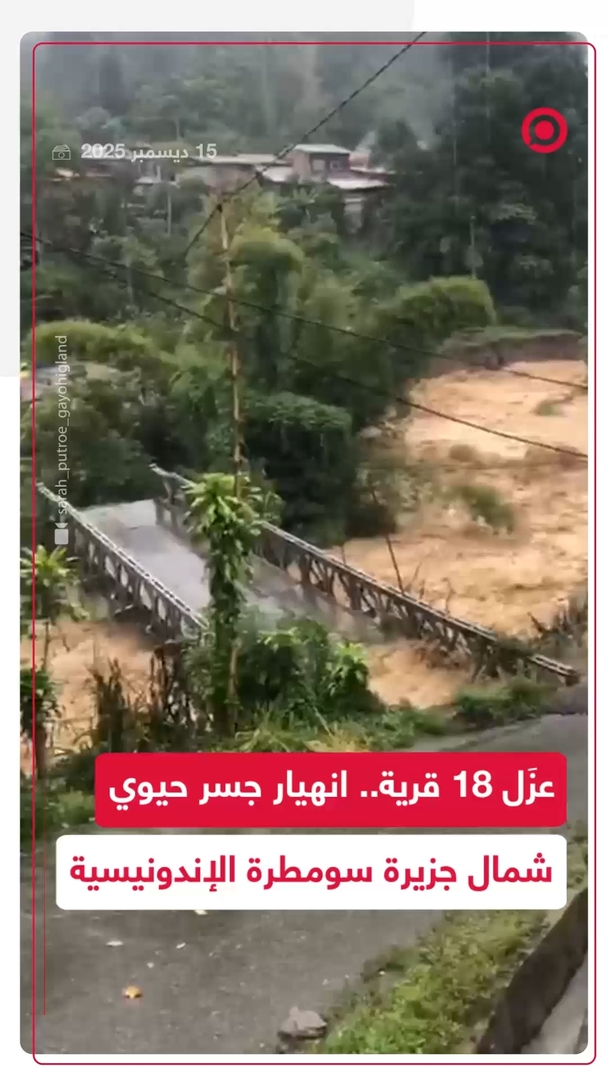 انهيار جسر حيوي شمال سومطرة يعزل 18 قرية إندونيسية