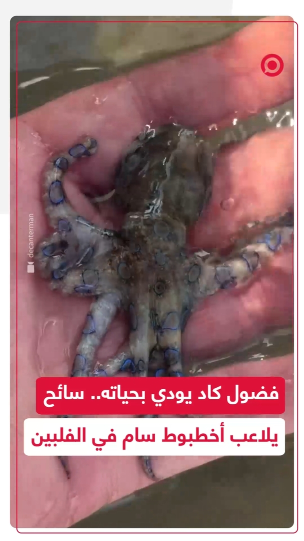 انتشر مقطع فيديو يظهر سائحا بريطانيا، وهو يقترب من أخطبوط صغير أثناء سباحته في الفلبين، قبل أن يتبيّن لاحقا أنه الأخطبوط "ذو الحلقات الزرقاء"، أحد أخطر الكائنات البحرية السامة. ووفق معهد أسترالي لعلوم البحار، فإن سمه قد يؤدي إلى شلل كامل دون فقدان الوعي. #سائح #أخطبوط #الفلبين #ريل #فيديو #viral #اكسبلور