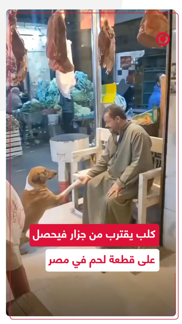 كلب يستعطف صاحب محل جزارة ويحصل على قطعة لحم في مصر