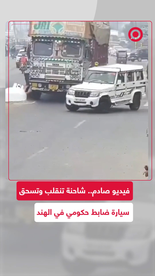 فيديو يوثق لحظة مأساوية على طريق سريع في الهند.. شاحنة محملة تفقد السيطرة، فتصطدم بالحاجز الوسطي وتنقلب مباشرة فوق سيارة ضابط حكومي، ما أسفر عن وفاته فورا. #الهند #ترند #فيديو #viral #اكسبلور