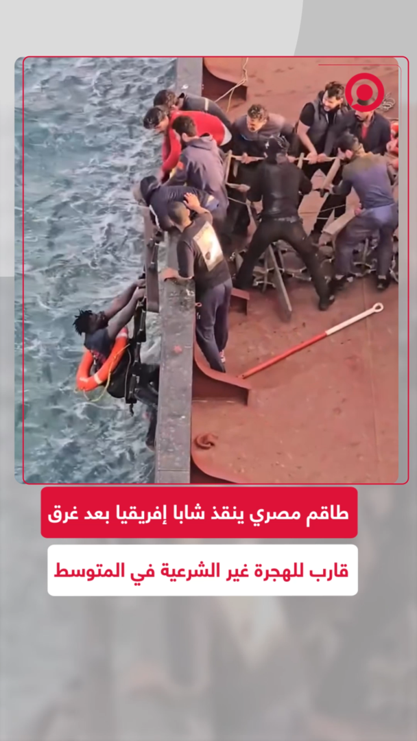 بقي في عرض البحر لمدة 24 ساعة.. طاقم مصري يتمكن من إنقاذ شاب إفريقي بعد غرق قارب للهجرة غير الشرعية في حوض المتوسط شرق دولة تونس وجنوب جزيرة مالطا. #مصر #إفريقيا #شاب_إفريقي #غرق_قارب #البحر_المتوسط
