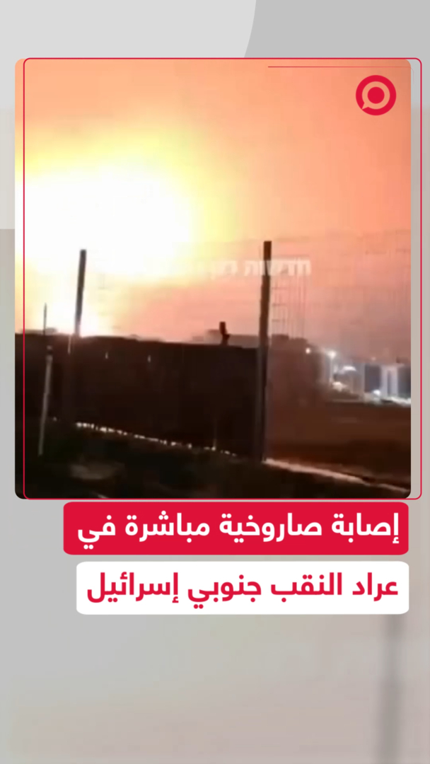 تزامنا مع دوي صفارات الإنذار في مواقع إسرائيلية.. صاروخ يصيب هدفه بدقة عالية في مدينة عراد بالنقب بعد فشل الدفاعات في اعتراضه.