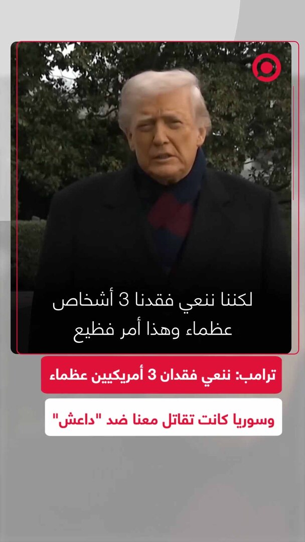 Play/Pause Mute/Unmute ترامب ينعي مقتل 3 أمريكيين في كمين "داعش" بسوريا ويعترف بالتعاون مع الجانب السوري Save post Share Facebook X VK.com Telegram