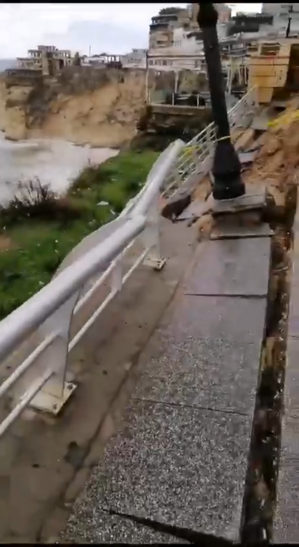 وتداولت مواقع التواصل الاجتماعي مشاهد توثق انهيار جزء من الرصيف البحري قبالة صخرة الروشة في بيروت جراء الأمطار الغزيرة.